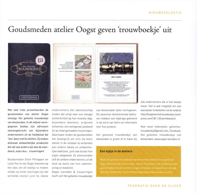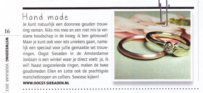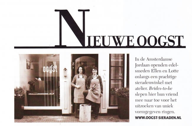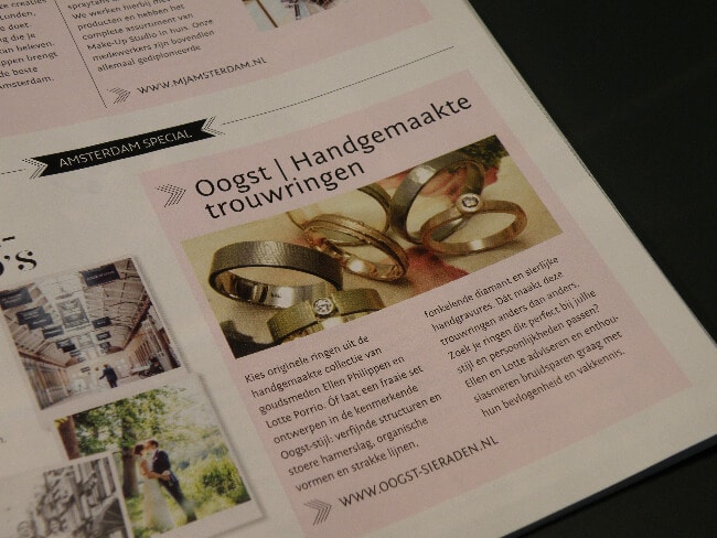 Curious about Oogst jewellery in the press? Read more about the Oogst studio on makers collective Amsterdam Made. The Oogst jewellery has been featured in the newspaper Parool, the magazines Bruid & Bruidegom, Antroposofie Magazine, Trouwplannen, EH&I, Vogue, Wit Wedding, Later, Vice Magazine & Edelmetaal.